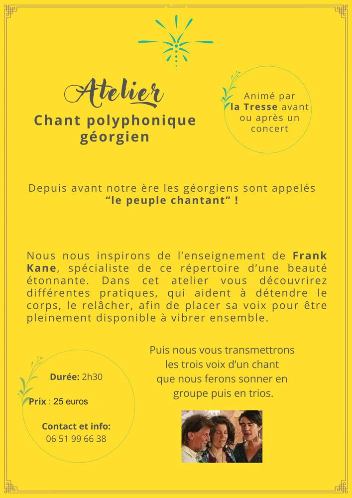 Dimanche 26 octobre de 15h00 à 17h30 Atelier de chant polyphonique géorgien
